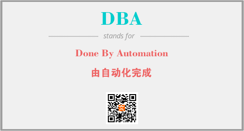 英文缩略词“DBA”经常作为“Done By Automation”的英文缩写来使用,中文表示:“由自动化完成”。本文将详细介绍英文缩写词DBA所代表英文单词,其对应的中文拼音、详细解释以及在英语中的流行度。此外,还有关于缩略词DBA的分类、应用领域及相关应用示例等。
