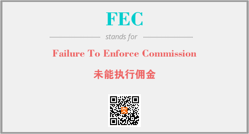 上述内容是“Failure To Enforce Commission”作为“FEC”的缩写,解释为“未能执行佣金”时的信息,以及英文缩略词FEC所代表的英文单词,其对应的中文拼音、详细解释以及在英文中的流行度和相关分类、应用领域及应用示例等。