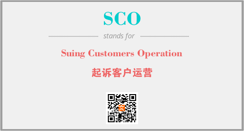 上述内容是“Suing Customers Operation”作为“SCO”的缩写,解释为“起诉客户运营”时的信息,以及英文缩略词SCO所代表的英文单词,其对应的中文拼音、详细解释以及在英文中的流行度和相关分类、应用领域及应用示例等。