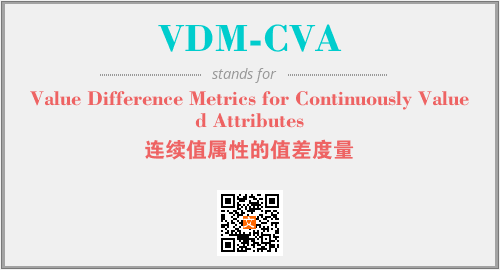 上述内容是“Value Difference Metrics for Continuously Valued Attributes”作为“VDM-CVA”的缩写,解释为“连续值属性的值差度量”时的信息,以及英文缩略词VDM-CVA所代表的英文单词,其对应的中文拼音、详细解释以及在英文中的流行度和相关分类、应用领域及应用示例等。