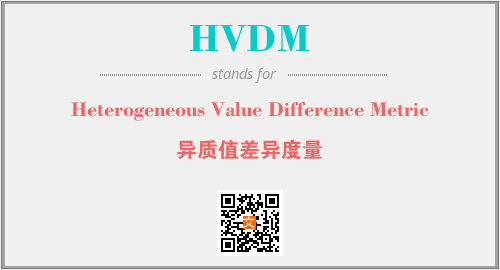 上述内容是“Heterogeneous Value Difference Metric”作为“HVDM”的缩写,解释为“异质值差异度量”时的信息,以及英文缩略词HVDM所代表的英文单词,其对应的中文拼音、详细解释以及在英文中的流行度和相关分类、应用领域及应用示例等。