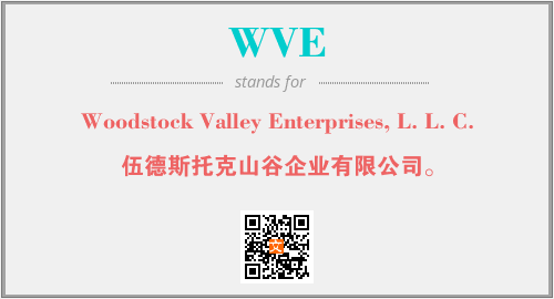 上述内容是“Woodstock Valley Enterprises, L. L. C.”作为“WVE”的缩写,解释为“伍德斯托克山谷企业有限公司。”时的信息,以及英文缩略词WVE所代表的英文单词,其对应的中文拼音、详细解释以及在英文中的流行度和相关分类、应用领域及应用示例等。