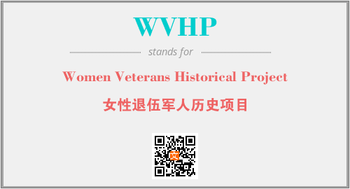 上述内容是“Women Veterans Historical Project”作为“WVHP”的缩写,解释为“女性退伍军人历史项目”时的信息,以及英文缩略词WVHP所代表的英文单词,其对应的中文拼音、详细解释以及在英文中的流行度和相关分类、应用领域及应用示例等。