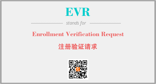 上述内容是“Enrollment Verification Request”作为“EVR”的缩写,解释为“注册验证请求”时的信息,以及英文缩略词EVR所代表的英文单词,其对应的中文拼音、详细解释以及在英文中的流行度和相关分类、应用领域及应用示例等。