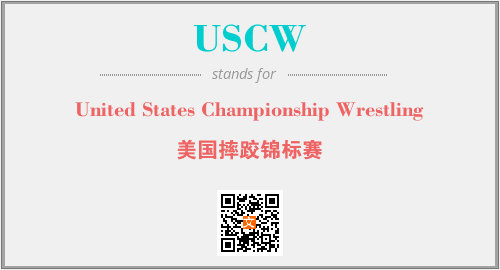 英文缩略词“USCW”经常作为“United States Championship Wrestling”的英文缩写来使用,中文表示:“美国摔跤锦标赛”。本文将详细介绍英文缩写词USCW所代表英文单词,其对应的中文拼音、详细解释以及在英语中的流行度。此外,还有关于缩略词USCW的分类、应用领域及相关应用示例等。