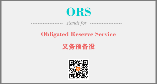 上述内容是“Obligated Reserve Service”作为“ORS”的缩写,解释为“义务预备役”时的信息,以及英文缩略词ORS所代表的英文单词,其对应的中文拼音、详细解释以及在英文中的流行度和相关分类、应用领域及应用示例等。