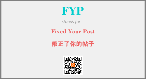 以上为Fixed Your Post英文缩略词FYP的中文解释,以及该英文缩写在英语的流行度、分类和应用领域方面的信息。