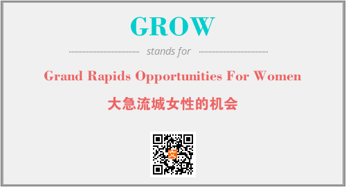 上述内容是“Grand Rapids Opportunities For Women”作为“GROW”的缩写,解释为“大急流城女性的机会”时的信息,以及英文缩略词GROW所代表的英文单词,其对应的中文拼音、详细解释以及在英文中的流行度和相关分类、应用领域及应用示例等。