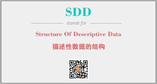 英文缩略词“SDD”经常作为“Structure Of Descriptive Data”的英文缩写来使用,中文表示:“描述性数据的结构”。本文将详细介绍英文缩写词SDD所代表英文单词,其对应的中文拼音、详细解释以及在英语中的流行度。此外,还有关于缩略词SDD的分类、应用领域及相关应用示例等。