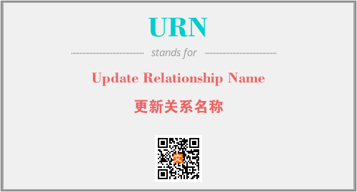 上述内容是“Update Relationship Name”作为“URN”的缩写,解释为“更新关系名称”时的信息,以及英文缩略词URN所代表的英文单词,其对应的中文拼音、详细解释以及在英文中的流行度和相关分类、应用领域及应用示例等。