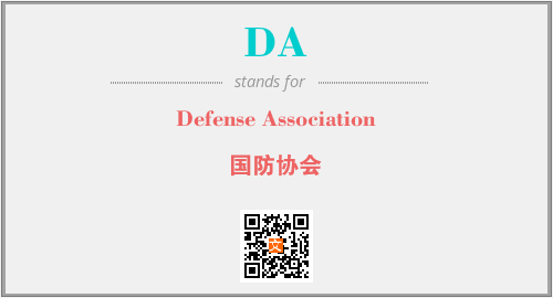 上述内容是“Defense Association”作为“DA”的缩写,解释为“国防协会”时的信息,以及英文缩略词DA所代表的英文单词,其对应的中文拼音、详细解释以及在英文中的流行度和相关分类、应用领域及应用示例等。