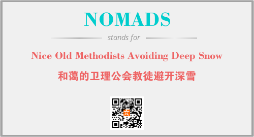 以上为Nice Old Methodists Avoiding Deep Snow英文缩略词NOMADS的中文解释,以及该英文缩写在英语的流行度、分类和应用领域方面的信息。
