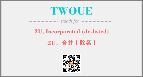 以上为2U, Incorporated (de-listed)英文缩略词TWOUE的中文解释,以及该英文缩写在英语的流行度、分类和应用领域方面的信息。