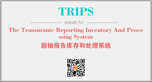 上述内容是“The Transuranic Reporting Inventory And Processing System”作为“TRIPS”的缩写,解释为“超铀报告库存和处理系统”时的信息,以及英文缩略词TRIPS所代表的英文单词,其对应的中文拼音、详细解释以及在英文中的流行度和相关分类、应用领域及应用示例等。