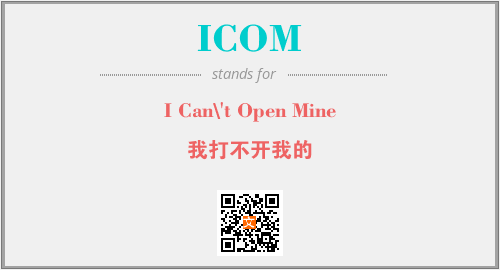 英文缩略词“ICOM”经常作为“I Can\'t Open Mine”的英文缩写来使用,中文表示:“我打不开我的”。本文将详细介绍英文缩写词ICOM所代表英文单词,其对应的中文拼音、详细解释以及在英语中的流行度。此外,还有关于缩略词ICOM的分类、应用领域及相关应用示例等。