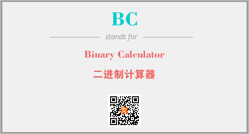 上述内容是“Binary Calculator”作为“BC”的缩写,解释为“二进制计算器”时的信息,以及英文缩略词BC所代表的英文单词,其对应的中文拼音、详细解释以及在英文中的流行度和相关分类、应用领域及应用示例等。