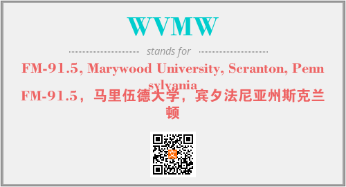 上述内容是“FM-91.5, Marywood University, Scranton, Pennsylvania”作为“WVMW”的缩写,解释为“FM-91.5,马里伍德大学,宾夕法尼亚州斯克兰顿”时的信息,以及英文缩略词WVMW所代表的英文单词,其对应的中文拼音、详细解释以及在英文中的流行度和相关分类、应用领域及应用示例等。