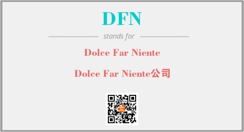 上述内容是“Dolce Far Niente”作为“DFN”的缩写,解释为“Dolce Far Niente公司”时的信息,以及英文缩略词DFN所代表的英文单词,其对应的中文拼音、详细解释以及在英文中的流行度和相关分类、应用领域及应用示例等。