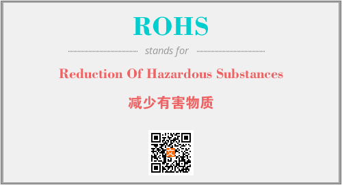 英文缩略词“ROHS”经常作为“Reduction Of Hazardous Substances”的英文缩写来使用,中文表示:“减少有害物质”。本文将详细介绍英文缩写词ROHS所代表英文单词,其对应的中文拼音、详细解释以及在英语中的流行度。此外,还有关于缩略词ROHS的分类、应用领域及相关应用示例等。