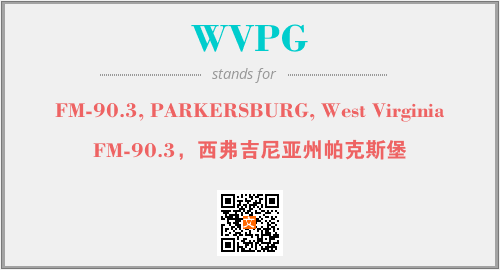 上述内容是“FM-90.3, PARKERSBURG, West Virginia”作为“WVPG”的缩写,解释为“FM-90.3,西弗吉尼亚州帕克斯堡”时的信息,以及英文缩略词WVPG所代表的英文单词,其对应的中文拼音、详细解释以及在英文中的流行度和相关分类、应用领域及应用示例等。