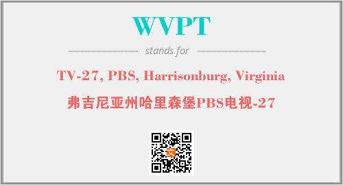 英文缩略词“WVPT”经常作为“TV-27, PBS, Harrisonburg, Virginia”的英文缩写来使用,中文表示:“弗吉尼亚州哈里森堡PBS电视-27”。本文将详细介绍英文缩写词WVPT所代表英文单词,其对应的中文拼音、详细解释以及在英语中的流行度。此外,还有关于缩略词WVPT的分类、应用领域及相关应用示例等。