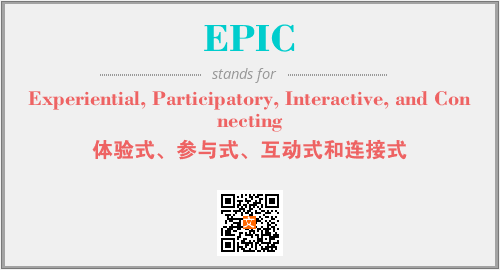 以上为Experiential, Participatory, Interactive, and Connecting英文缩略词EPIC的中文解释,以及该英文缩写在英语的流行度、分类和应用领域方面的信息。