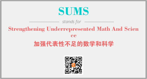 上述内容是“Strengthening Underrepresented Math And Science”作为“SUMS”的缩写,解释为“加强代表性不足的数学和科学”时的信息,以及英文缩略词SUMS所代表的英文单词,其对应的中文拼音、详细解释以及在英文中的流行度和相关分类、应用领域及应用示例等。