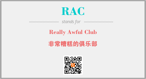 以上为Really Awful Club英文缩略词RAC的中文解释,以及该英文缩写在英语的流行度、分类和应用领域方面的信息。