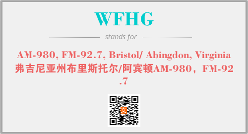上述内容是“AM-980, FM-92.7, Bristol/ Abingdon, Virginia”作为“WFHG”的缩写,解释为“弗吉尼亚州布里斯托尔/阿宾顿AM-980,FM-92.7”时的信息,以及英文缩略词WFHG所代表的英文单词,其对应的中文拼音、详细解释以及在英文中的流行度和相关分类、应用领域及应用示例等。