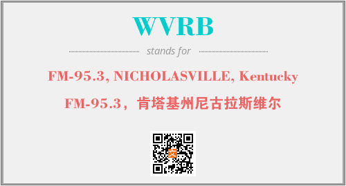 上述内容是“FM-95.3, NICHOLASVILLE, Kentucky”作为“WVRB”的缩写,解释为“FM-95.3,肯塔基州尼古拉斯维尔”时的信息,以及英文缩略词WVRB所代表的英文单词,其对应的中文拼音、详细解释以及在英文中的流行度和相关分类、应用领域及应用示例等。
