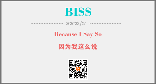 英文缩略词“BISS”经常作为“Because I Say So”的英文缩写来使用,中文表示:“因为我这么说”。本文将详细介绍英文缩写词BISS所代表英文单词,其对应的中文拼音、详细解释以及在英语中的流行度。此外,还有关于缩略词BISS的分类、应用领域及相关应用示例等。