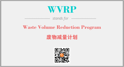 上述内容是“Waste Volume Reduction Program”作为“WVRP”的缩写,解释为“废物减量计划”时的信息,以及英文缩略词WVRP所代表的英文单词,其对应的中文拼音、详细解释以及在英文中的流行度和相关分类、应用领域及应用示例等。