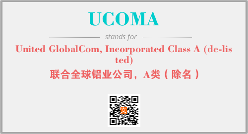 上述内容是“United GlobalCom, Incorporated Class A (de-listed)”作为“UCOMA”的缩写,解释为“联合全球铝业公司,A类(除名)”时的信息,以及英文缩略词UCOMA所代表的英文单词,其对应的中文拼音、详细解释以及在英文中的流行度和相关分类、应用领域及应用示例等。