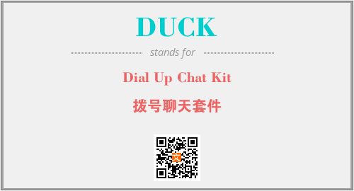 以上为Dial Up Chat Kit英文缩略词DUCK的中文解释,以及该英文缩写在英语的流行度、分类和应用领域方面的信息。
