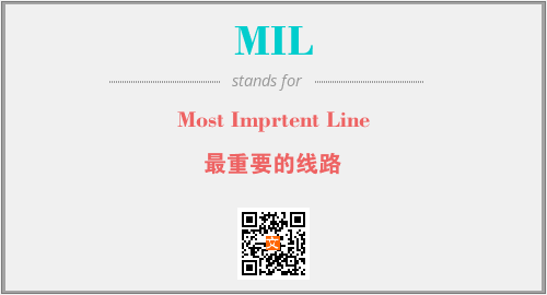 上述内容是“Most Imprtent Line”作为“MIL”的缩写,解释为“最重要的线路”时的信息,以及英文缩略词MIL所代表的英文单词,其对应的中文拼音、详细解释以及在英文中的流行度和相关分类、应用领域及应用示例等。