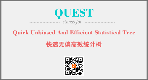 上述内容是“Quick Unbiased And Efficient Statistical Tree”作为“QUEST”的缩写,解释为“快速无偏高效统计树”时的信息,以及英文缩略词QUEST所代表的英文单词,其对应的中文拼音、详细解释以及在英文中的流行度和相关分类、应用领域及应用示例等。