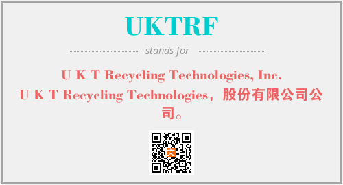 上述内容是“U K T Recycling Technologies, Inc.”作为“UKTRF”的缩写,解释为“U K T Recycling Technologies,股份有限公司公司。”时的信息,以及英文缩略词UKTRF所代表的英文单词,其对应的中文拼音、详细解释以及在英文中的流行度和相关分类、应用领域及应用示例等。