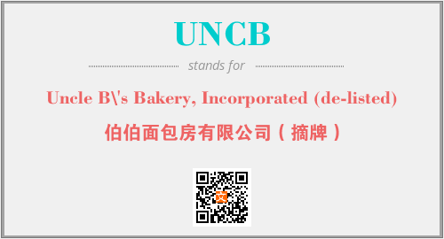 上述内容是“Uncle B\'s Bakery, Incorporated (de-listed)”作为“UNCB”的缩写,解释为“伯伯面包房有限公司(摘牌)”时的信息,以及英文缩略词UNCB所代表的英文单词,其对应的中文拼音、详细解释以及在英文中的流行度和相关分类、应用领域及应用示例等。