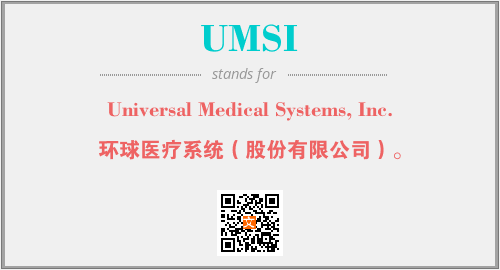上述内容是“Universal Medical Systems, Inc.”作为“UMSI”的缩写,解释为“环球医疗系统(股份有限公司)。”时的信息,以及英文缩略词UMSI所代表的英文单词,其对应的中文拼音、详细解释以及在英文中的流行度和相关分类、应用领域及应用示例等。
