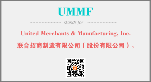 上述内容是“United Merchants & Manufacturing, Inc.”作为“UMMF”的缩写,解释为“联合招商制造有限公司(股份有限公司)。”时的信息,以及英文缩略词UMMF所代表的英文单词,其对应的中文拼音、详细解释以及在英文中的流行度和相关分类、应用领域及应用示例等。