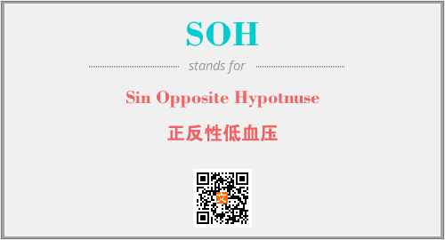 上述内容是“Sin Opposite Hypotnuse”作为“SOH”的缩写,解释为“正反性低血压”时的信息,以及英文缩略词SOH所代表的英文单词,其对应的中文拼音、详细解释以及在英文中的流行度和相关分类、应用领域及应用示例等。
