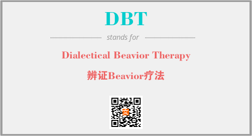 英文缩略词“DBT”经常作为“Dialectical Beavior Therapy”的英文缩写来使用,中文表示:“辨证Beavior疗法”。本文将详细介绍英文缩写词DBT所代表英文单词,其对应的中文拼音、详细解释以及在英语中的流行度。此外,还有关于缩略词DBT的分类、应用领域及相关应用示例等。