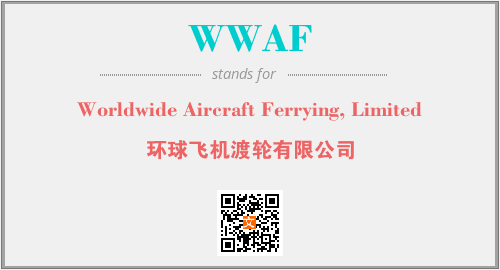 上述内容是“Worldwide Aircraft Ferrying, Limited”作为“WWAF”的缩写,解释为“环球飞机渡轮有限公司”时的信息,以及英文缩略词WWAF所代表的英文单词,其对应的中文拼音、详细解释以及在英文中的流行度和相关分类、应用领域及应用示例等。