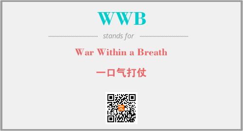 以上为War Within a Breath英文缩略词WWB的中文解释,以及该英文缩写在英语的流行度、分类和应用领域方面的信息。