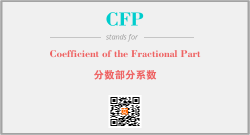 上述内容是“Coefficient of the Fractional Part”作为“CFP”的缩写,解释为“分数部分系数”时的信息,以及英文缩略词CFP所代表的英文单词,其对应的中文拼音、详细解释以及在英文中的流行度和相关分类、应用领域及应用示例等。