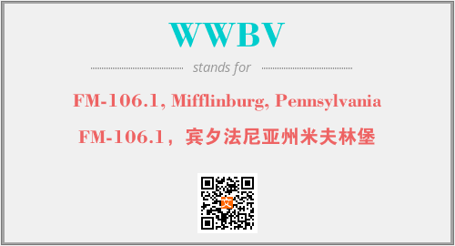 上述内容是“FM-106.1, Mifflinburg, Pennsylvania”作为“WWBV”的缩写,解释为“FM-106.1,宾夕法尼亚州米夫林堡”时的信息,以及英文缩略词WWBV所代表的英文单词,其对应的中文拼音、详细解释以及在英文中的流行度和相关分类、应用领域及应用示例等。
