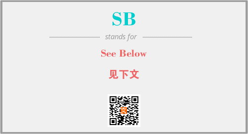 上述内容是“See Below”作为“SB”的缩写,解释为“见下文”时的信息,以及英文缩略词SB所代表的英文单词,其对应的中文拼音、详细解释以及在英文中的流行度和相关分类、应用领域及应用示例等。