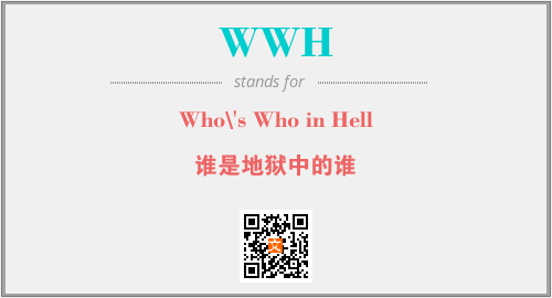 以上为Who\'s Who in Hell英文缩略词WWH的中文解释,以及该英文缩写在英语的流行度、分类和应用领域方面的信息。