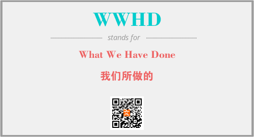 英文缩略词“WWHD”经常作为“What We Have Done”的英文缩写来使用,中文表示:“我们所做的”。本文将详细介绍英文缩写词WWHD所代表英文单词,其对应的中文拼音、详细解释以及在英语中的流行度。此外,还有关于缩略词WWHD的分类、应用领域及相关应用示例等。