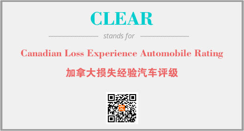 上述内容是“Canadian Loss Experience Automobile Rating”作为“CLEAR”的缩写,解释为“加拿大损失经验汽车评级”时的信息,以及英文缩略词CLEAR所代表的英文单词,其对应的中文拼音、详细解释以及在英文中的流行度和相关分类、应用领域及应用示例等。